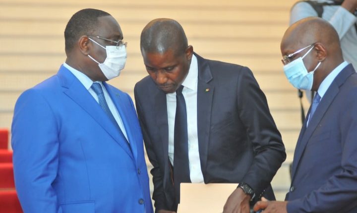 SENTV : Abdou Latif NDIAYE, le Conseiller en Communication du Ministre des Sports Matar BA, en toute complicité avec le Président de la République Macky SALL. C’était hier mardi au Palais de la République lors de la remise de décoration au grade de Chevalier dans l’Ordre National du Lion á l’Équipe nationale de football du Sénégal des Malentendants, championne d’Afrique des Nations de la première édition.