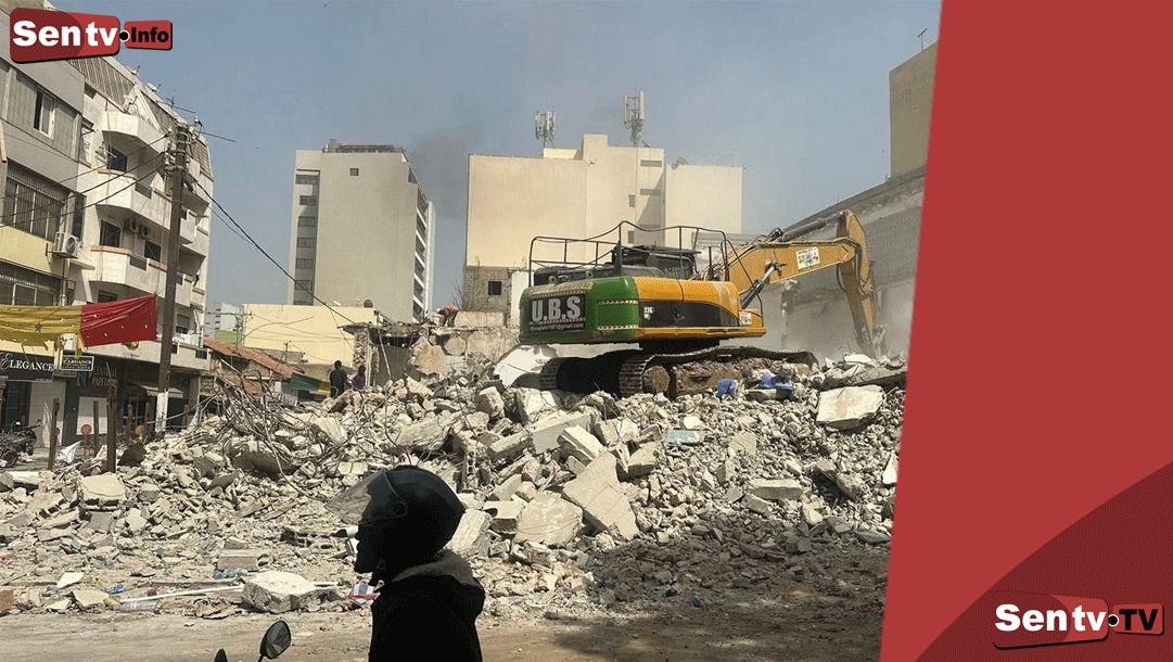 SENTV : Les engins de démolition sont entrés en action ce samedi sur l’avenue Lamine Guèye. La Zawiya El Hadj Malick Sy, haut lieu de spiritualité tidiane au cœur de la capitale, a été entièrement rasée dans le cadre d’un projet de reconstruction annoncé par ses responsables religieux.