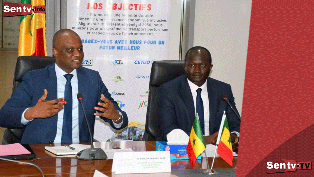 SENTV : Dans le cadre de sa tournée des ministères sectoriels, le Ministre de l’Économie, du Plan et de la Coopération, Abdourahmane Sarr, a été reçu à Diamniadio par son homologue des Transports Terrestres et Aériens, Yankoba Diémé, pour formaliser un accord de performance aligné sur la Stratégie Nationale de Développement (SND) 2025-2029.
