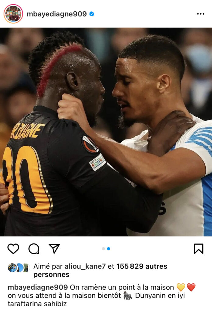 « On ramène un point, on vous attend bientôt chez nous. Nous avons les meilleurs fans du monde », a lancé l’attaquant sénégalais, en publiant une photographie de son altercation avec Saliba.