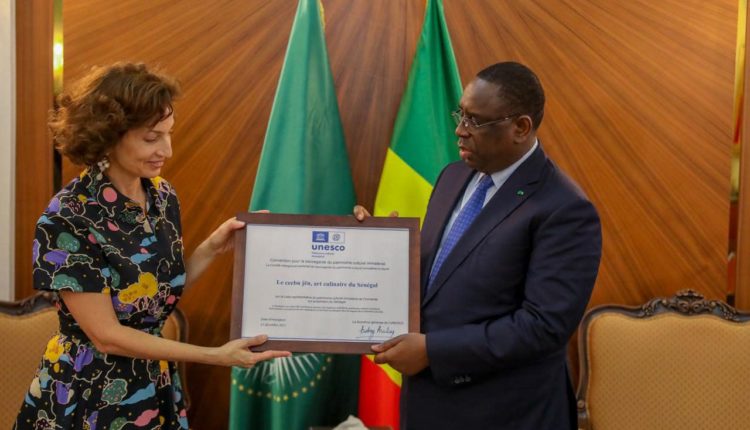 Au cours de l’audience, Audrey Azoulay a remis au chef de l’Etat le certificat d’inscription du Ceebu jën sur la liste du patrimoine culturel immatériel de l’humanité.