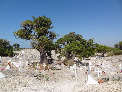 Aux côtés de ces symboles humains se trouve le cimetière mixte de Joal Fadiouth, l’un des rares au monde, où reposent les âmes des disparus chrétiens et musulmans. Cet espace réservé à ceux qui nous ont précédés, est une fierté pour les habitants de la petite commune de Joal-Fadiouth. Majoritairement catholique, dans un pays où près de 95% de la population est musulmane, les habitants y partagent un quotidien paisible. Preuve de cette tolérance, où la religion n’a de place que dans les « cœurs », le cimetière de qui ce n’était autrefois que deux petits villages (Joal et Fadiouth), a la particularité d’être un symbole de la tolérance religieuse au Sénégal, ouvert à tous. Il n’est donc pas anormal d’assister au même moment à l’enterrement dans le cimetière d’un musulman et d’un chrétien. « Comme pour nous rappeler que face à la mort il n’est point question de religion ou de classe sociale ».