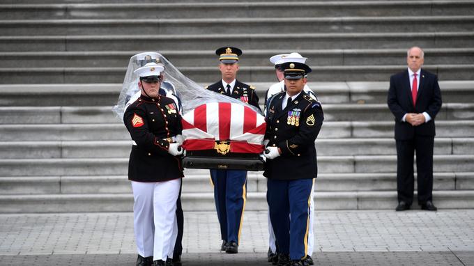 Pour porter son cercueil, au côté de figures politiques démocrates et républicaines, dont l’ex-vice-président Joe Biden, ainsi que de l’acteur Warren Beatty, un ami personnel de trente ans, John McCain avait choisi Vladimir Kara-Murza, un dissident russe ayant survécu à deux tentatives d’empoisonnement. Ultime message en direction de Donald Trump, auquel le sénateur reprochait sa «servilité» envers Vladimir Poutine.