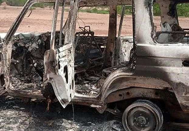 « On ne connait pas l’identité des assaillants mais ils sont venus à motos à travers la brousse et ont attendu l’arrivée des touristes. Le véhicule emprunté par les touristes appartient à l’ONG Acted ». Les deux véhicules des touristes ont été brûlés dans l’attaque par les hommes armés, a précisé Moussa Kaka, correspondant RFI pour France 24.