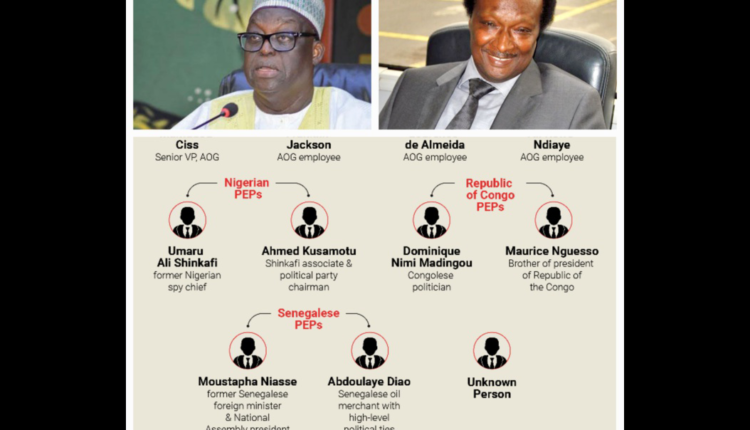 Les enquêteurs ont formellement identifiés les onze signataires des cinq comptes conjoints où plusieurs dizaines de milliards de FCfa ont transité. Selon les écrits de nos confrères de Suisse Secrets, il s’agit de quatre employés de AOG (Mamadou Ciss, Franklin Jackson, Lourenco de Almeida et Ali Kewe Ndiaye) ; deux nigérians Umaru Ali Shinkafi et Ahmed Kusamotu ; deux congolais, Maurice Nguesso et Dominique Nimi Madingou ; deux sénégalais, Moustapha Niasse (homme politique) et Baba Diao (marchand de pétrole)… l’identité de la dernière personnalité n’étant pas connue…