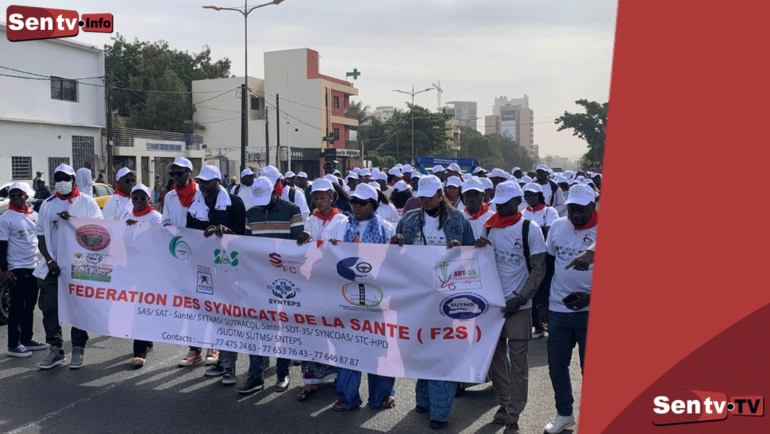 SENTV : Le front social se durcit dans le secteur de la santé et de l’administration publique. L’intersyndicale des travailleurs de l’administration, de concert avec la Fédération des syndicats de la santé (F2S), a organisé ce jeudi une marche pacifique pour dénoncer le non-respect, par l’État, des accords conclus dans le cadre du pacte de stabilité sociale. À l’issue de la mobilisation, les organisations syndicales ont annoncé une grève de 48 heures renouvelable, entrée en vigueur dès ce jeudi.