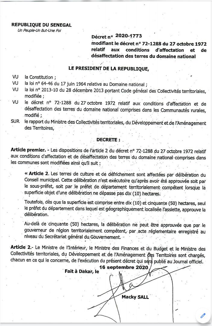 Urgent : Le Président Sall adoube les sous-préfets, préfets et gouverneurs et freine les Maires pour l’attribution des terres (Décret)