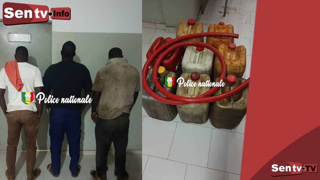 Selon les informations recueillies, les policiers ont surpris les trois suspects à Keur Mbaye Fall, à proximité de la gare du TER, alors qu’ils étaient en train d’extraire du carburant d’un camion non immatriculé à l’aide d’un tuyau. Le véhicule, venant de quitter le port, devait être conduit vers Diamniadio. Au moment de leur interpellation, les mis en cause avaient déjà rempli sept bouteilles de 20 litres et une huitième était à moitié pleine.